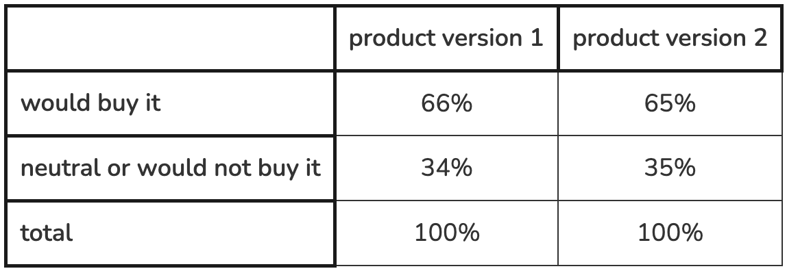 A company is testing two versions of a product with a group of people to find out whether they would buy the product. How many people reviewed product version 2?