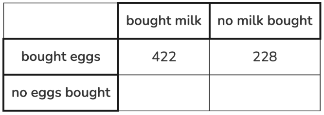 Sample response: 227 bought milk and no eggs. 123 bought neither milk nor eggs.
