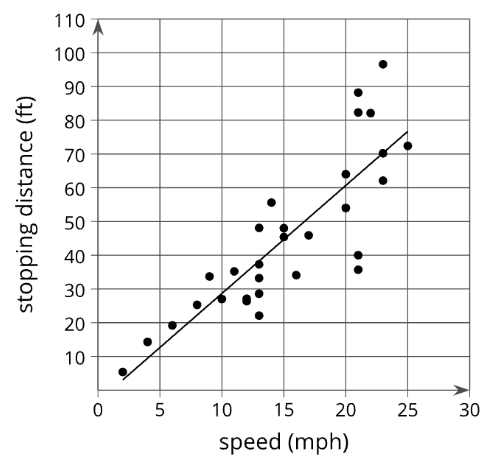 The slope means that for every extra mile per hour of speed, the car takes about 3.1 feet longer to stop.