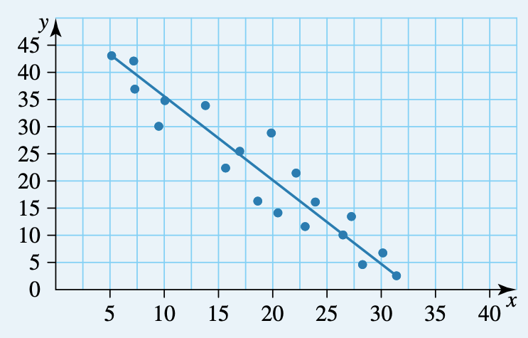 Find the equation of a line of best fit if it is known that it passes through the points (5, 5) and (20, 27).