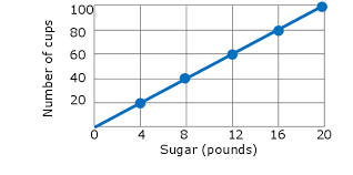 The graph below shows the ratio between the cups of milk in a recipe compared to the pounds of sugar.