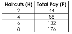 Andrew makes a certain amount of money for each haircut he does. The table below shows the relationship between the number of haircuts he does and the amount he gets paid.