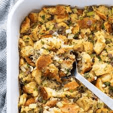 This filling, or dressing is an edible mixture, often composed of herbs and a starch such as bread, used to fill a cavity in the preparation of another food item. Many foods may be stuffed, including poultry, seafood, and vegetables.