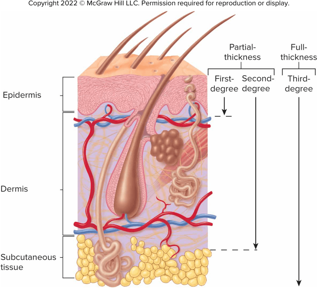 A burn extends down from the surface of the skin to the red star. What classification of burn is this?