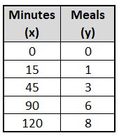 The table shows the relationship between minutes spent cooking and number of meals you can cook.