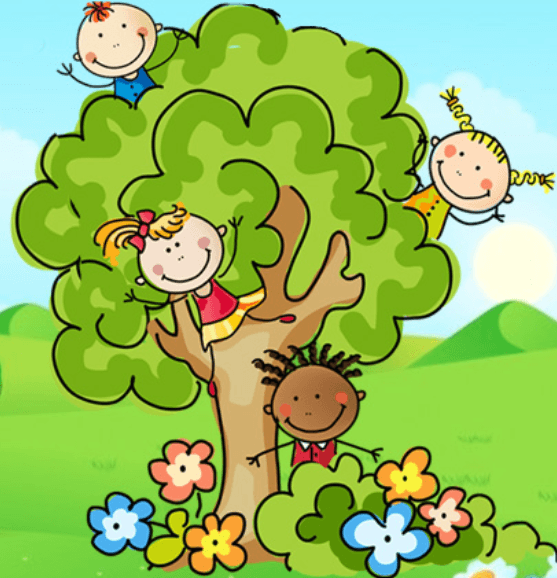 There are five monkeys. Some are on the tree. Some are on the grass / under the tree.