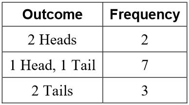 You flip a coin twice and record the results in the table. You repeat this process 12 times.
