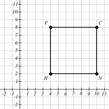 Rectangle FCNH is rotated 90º clockwise then dilated by a scale factor of 0.5 to create F'C'N'H'. What is the length of C'N' in units?