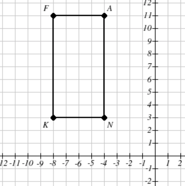 Rectangle AKNF is rotated 90º clockwise then translated 4 units to the right and 3 units down to create A'K'N'F'. What is the length of A'F' in units?