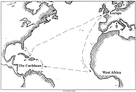 Through Triangle Trade, what types of goods or materials were traded through each of the three legs of the trade system?