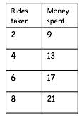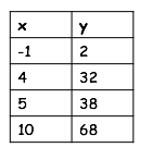 Find the equation from the table and interpret the y-intercept (be specific to the situation)