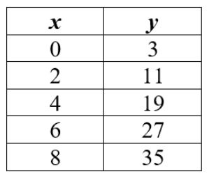 Find the equation for the table and interpret all 4 parts (y,m,x,and b)