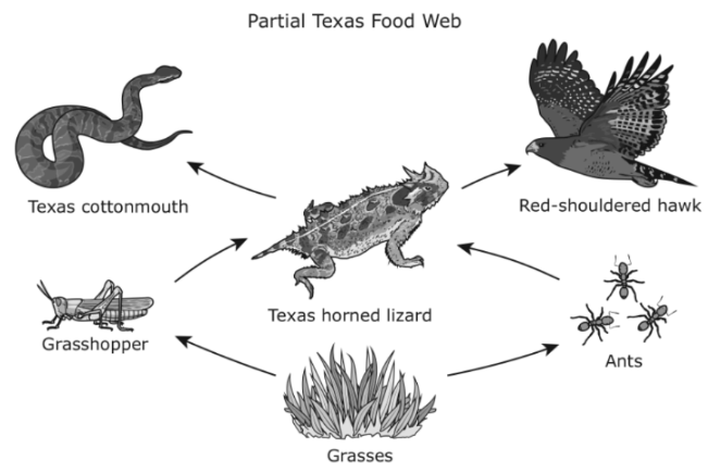 Which population(s) would increase as a result of a disease that suddenly reduced the Texas horned lizard?