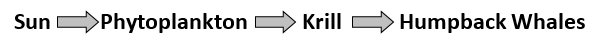 If 10,000 kcal of energy are present in the producer population, approximately how much chemical energy would be present in the population of humpback whales?