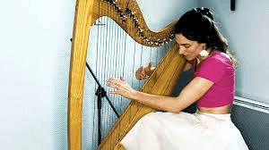 I am in the string family. My strings are plucked to produce tones. My pedals stretch and tune the strings to make different sounds. I lean on the musician when I am played. I am a _________________.