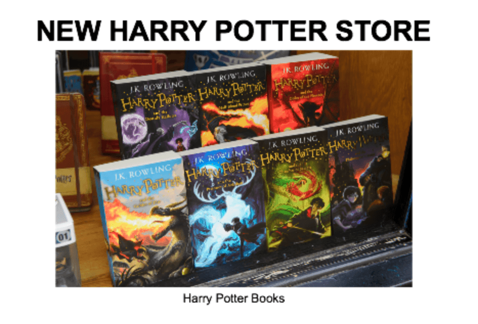 A new Harry potter store will open on June 3 in New York City, New York. The store is called Harry Potter New York. Harry Potter includes a popular book series and movie series. The store will sell Harry Potter clothes, toys, games and art work.