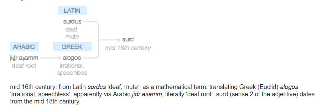 What is the meaning (or origin) of the term 'surd'