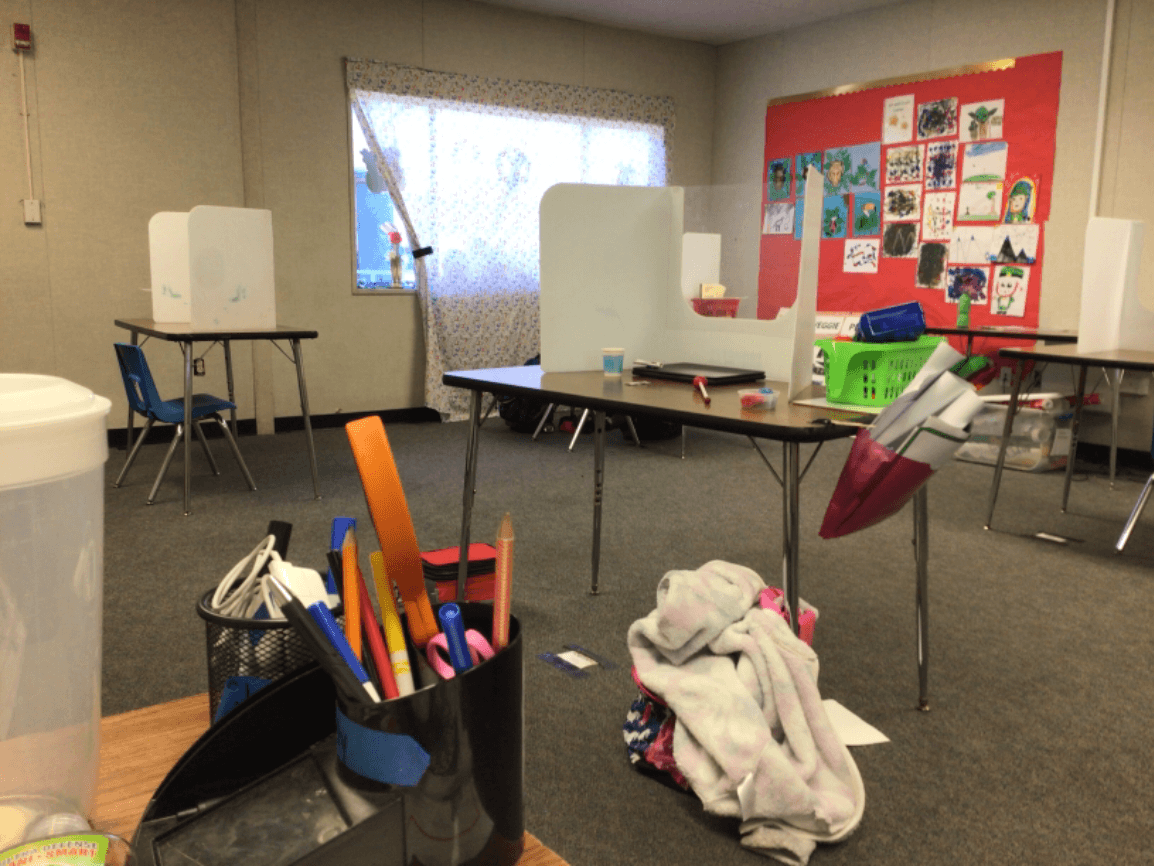 Whose desk in the class is the cleanest ?