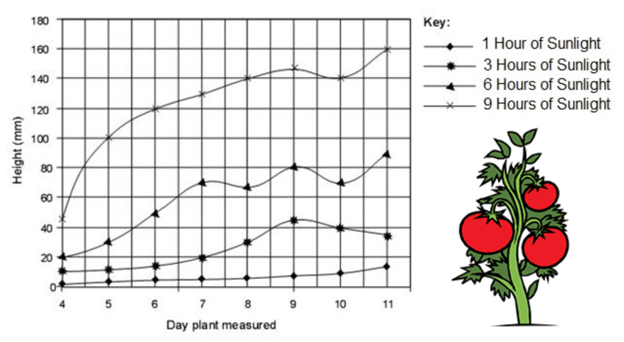 On Day 7, the plants kept in the sun for 3 hours were how tall?