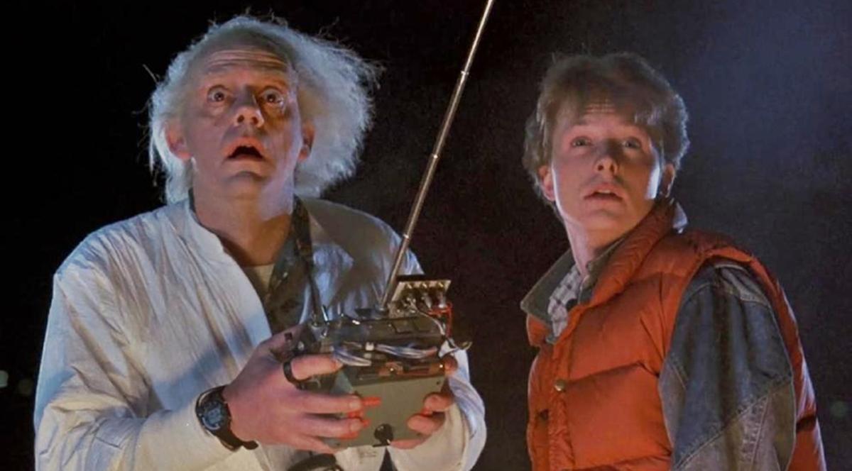 Un científico y un joven utilizan un vehículo para viajar en el tiempo.