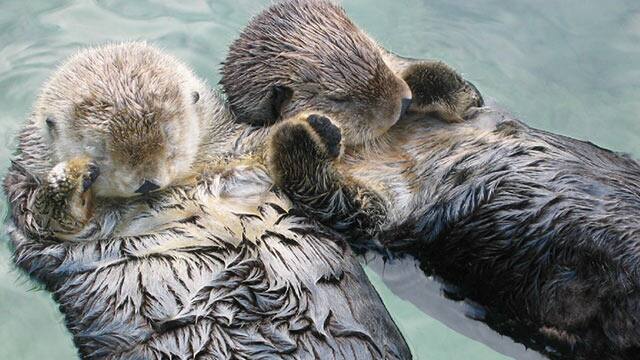 Welche Tiere halten Händchen während sie schlafend auf dem Wasser treiben?