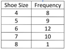 This table shows the number of people with each shoe size in a class. What is the average shoe size?