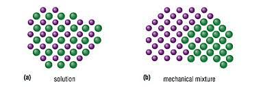 When looking at a picture how do a mechanical mixture and a solution differ?
