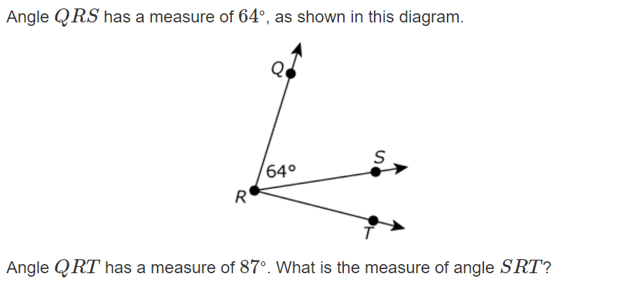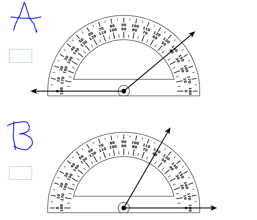 Read the protractor to find degrees of each angle.