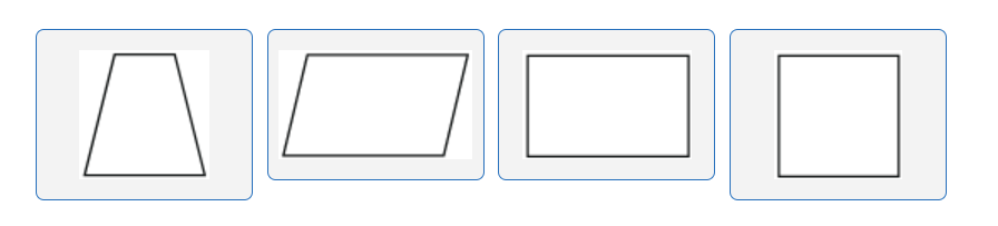 What is trapezoid - 1 line of symmetry, parallelogram - 0 lines of symmetry, 2 lines of symmetry, square - 4 lines of symmetry?