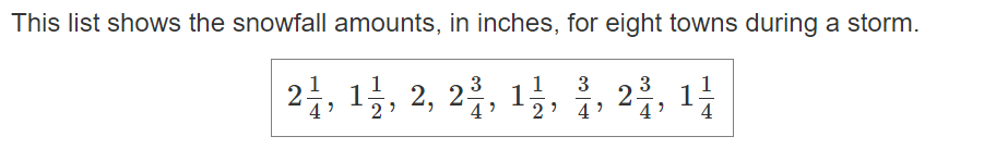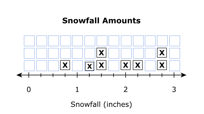 Draw a line plot to show the snowfall amounts on a number line.