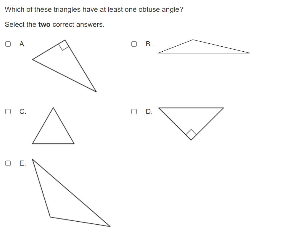 Select the two stickers in this set that appear to have at least one obtuse angle. Use the labels on the stickers OR the names of the shapes in your answer.