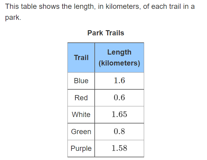 This trail has the shortest length. ***Bonus put these trails in order from greatest to least length.