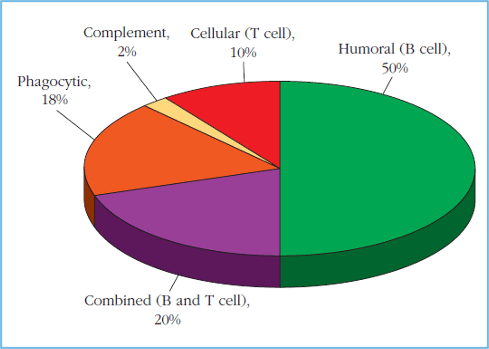 En cuanto a frecuencia, que tipo de células son las más afectadas en las inmunodeficiencias?