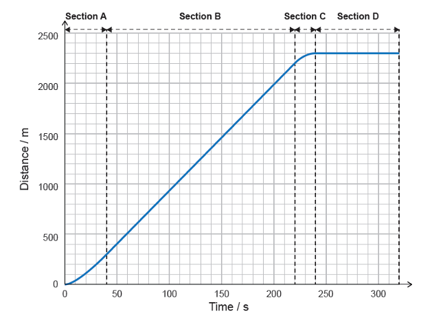 A car drives at a speed of 21 ms-1 for 37 seconds. How far did it travel? Round our answer to 3.s.f. Show all working