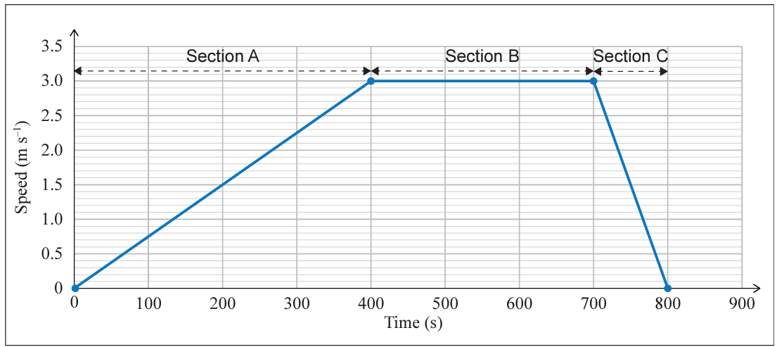 Another race is 3,000 m long. Zoi averaged a speed of 5 ms-1. Calculate the time it would take her to finish the race. Show all working