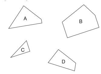 Hvilke tre ud af de fire stykker kan sættes sammen så de danner en perfekt firkant?
