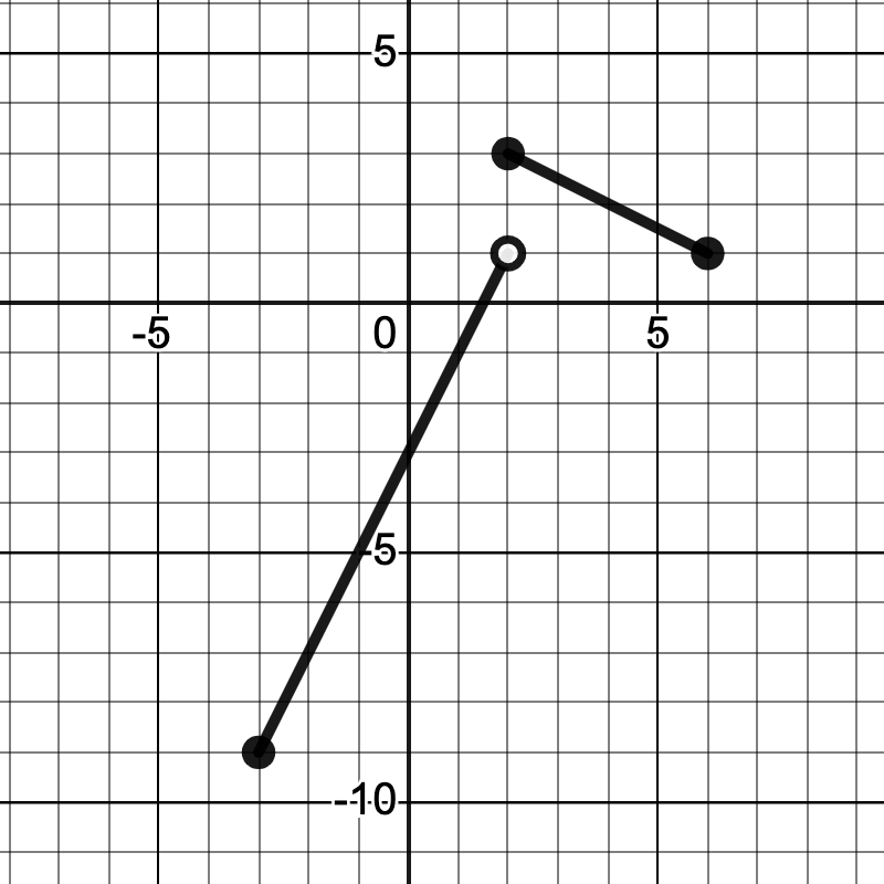 y={(2x-3. -3<=x<2),(-1/2x+4 2<=x<=6):}