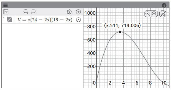 What x produces the max volume and what is the max volume of the box with given dimensions?