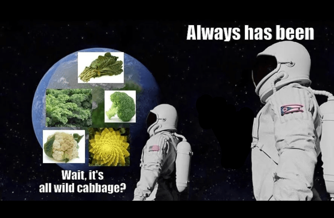 Cabbage, kale broccoli, and cauliflower are all the same plant.