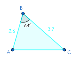 The length of the two sides of a triangle is 6.5 cm and 9.4 cm respectively. Angle between them is 131 degrees.