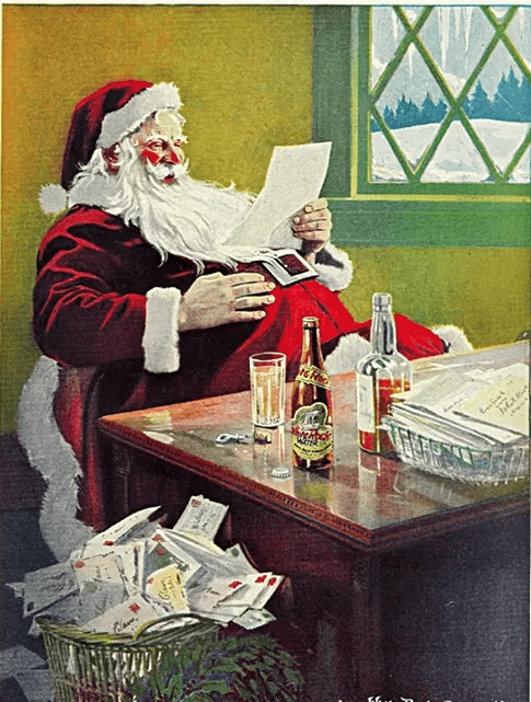 Coke Cola has always been known to be the first beverage to advertise Santa Claus in 1920, but actually, that is not true. This is a picture of an advertisement from 1915 from White Rock Beverages. What beverage were they advertising?