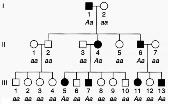 Dominant: one copy gives you the disease, there are no carriers - so you either have it or you don't