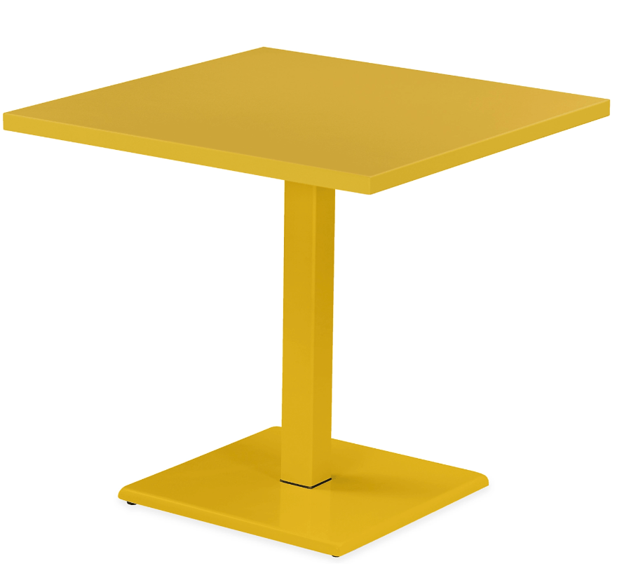 This outdoor table by EMU is ideal for small patios and balconies. An extra-durable powder-coated finish makes this steel table suitable for commercial use. The saffron or cognac option are a great way to add a pop of color.