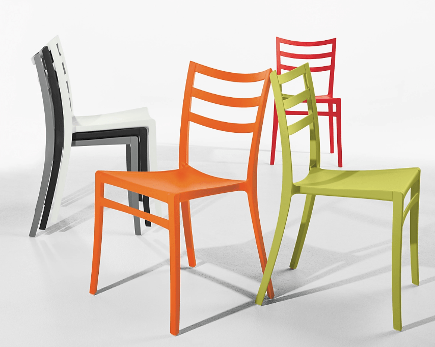 This chair by Casprini is inspired by iconic café seating found throughout Italy. The molded plastic is lightweight and durable and adds personality with color. It shares the same name of a teenage witch popular in the late 90's.