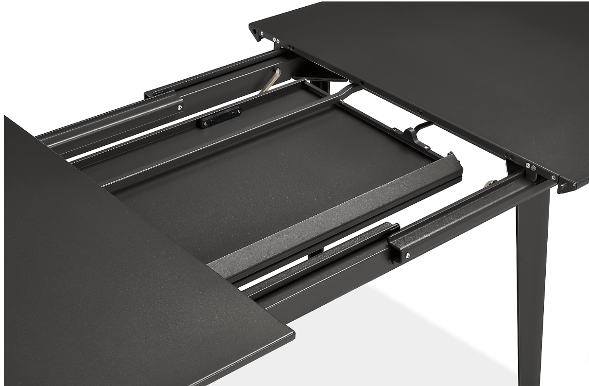 It is a view from a particular place, especially a beautiful view from a high place. It is also a durable powder-coated steel extension table with one large self-storing leaf.