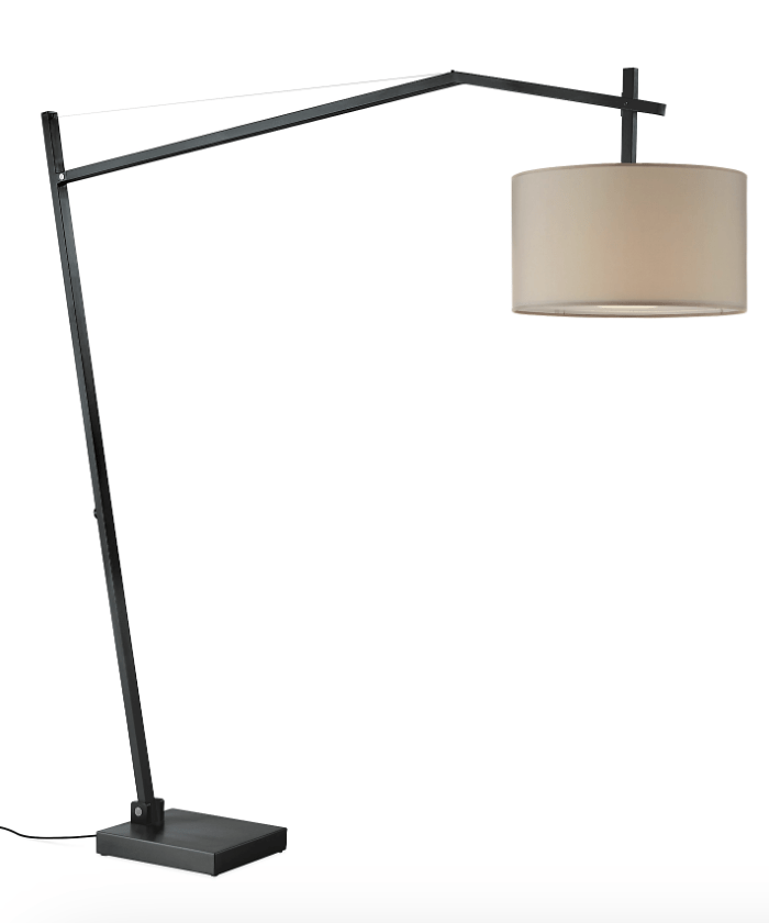 This is a overarching floor lamp with a sculptural form and grand scale. A unique tension wire system ensures the stem and arm move smoothly and hold their positions. It is also the last name of American Idol's first winner.