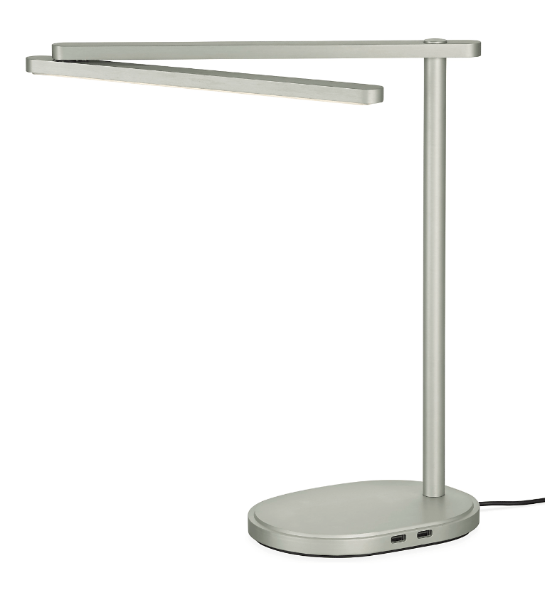 With its unique two-arm design, this task lamp makes it easy to direct light anywhere on your work surface. The acrylic diffuser provides a soft glow from the side, while the dimmable LED board delivers crisp bright light