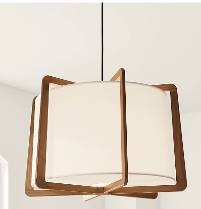 Also the second largest city in Alaska, this pendant has a beautifully crafted outer wood frame that encapsulates a fabric drum shade. It is the pendant version of a ship in a bottle.