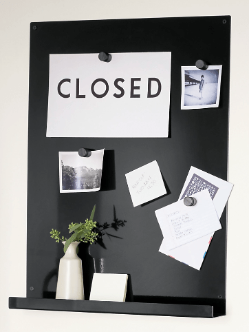 This magnetic board comes with five wood magnets. Stocked in white or natural steel, this can be made for you in 16 other color options and is perfect for office spaces or or a kids bedroom.
