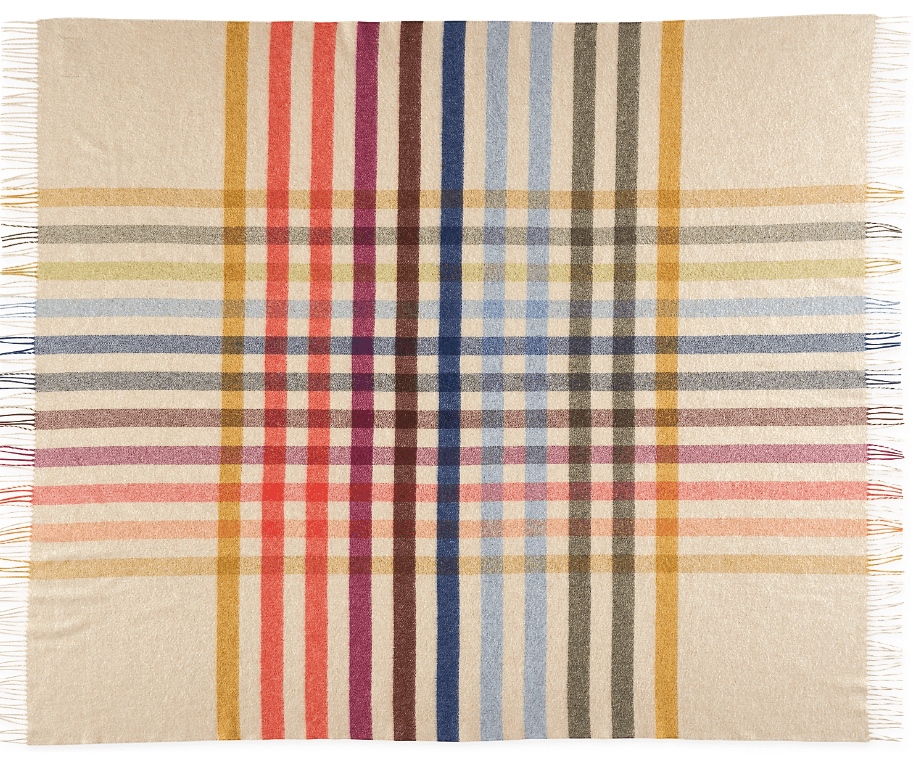Alternating stripes of color converge at the center of this throw blanket, which is made in England from 100% wool at one of the oldest fabric mills in the world. It is also the first name of the actress starrung in Breakfast at Tiffany's and My Fair Lady.